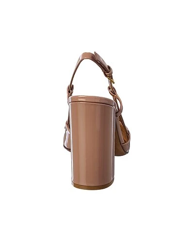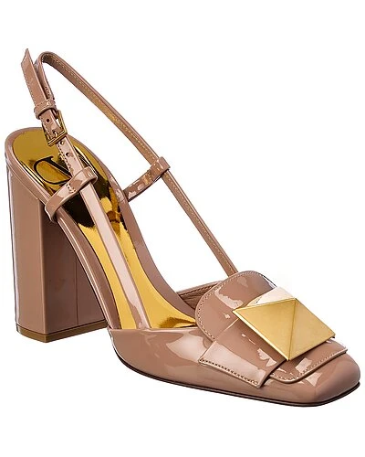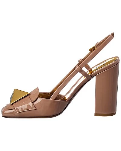 - One Stud 100 Patent Slingback Pump in pink patent leather and gold-tone hardware with Roman studs