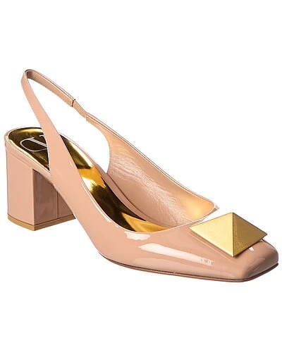 - One Stud 60 Patent Slingback Pump in nude patent leather and gold-tone hardware with Roman studs