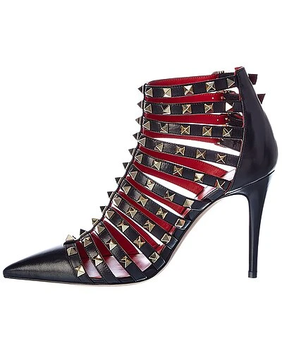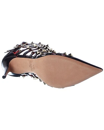 - Alcove Rockstud 100 Leather Ankle Strap Pump in black leather with platinum-finish rockstuds