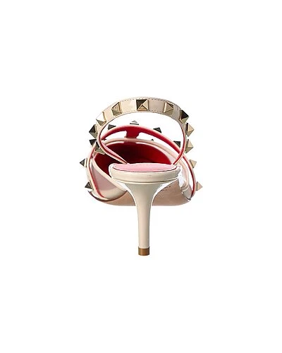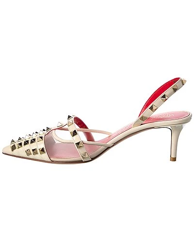 - Rockstud Alcove 65 Patent & Mesh Pump in white mesh and patent leather and gold-tone hardware with rockstuds