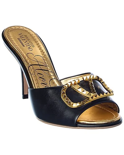 - Rockstud Alcove 85 Leather Sandal in black leather and gold-tone hardware with VLogo accent