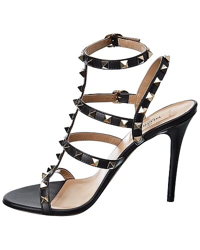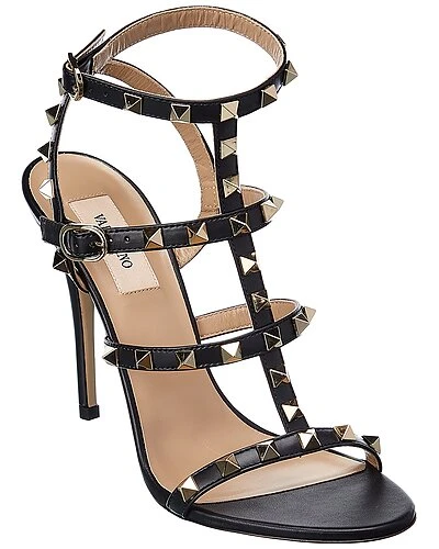 - Rockstud Leather Sandal in black leather and gold-tone hardware with Rockstud trim