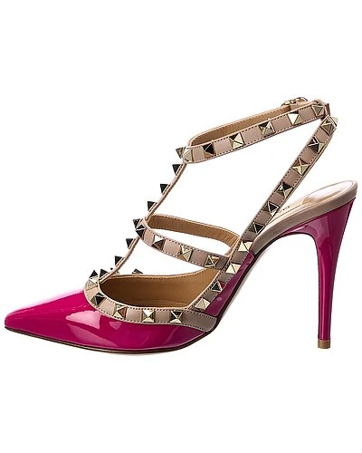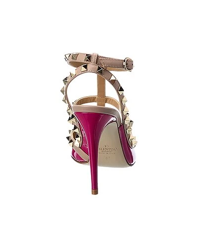 - Rockstud Caged 100 Patent Pump in pink patent leather with platinum-finish rockstuds and powder leather trim