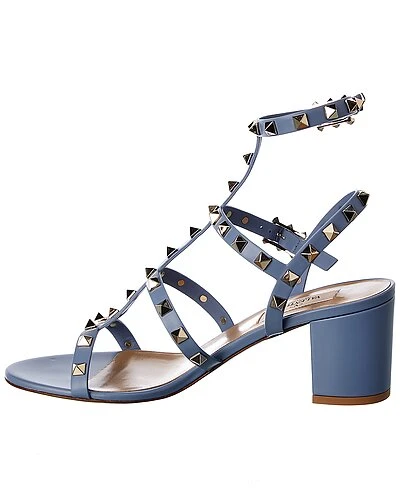 - Rockstud Caged 60 Leather Sandal in Niagara leather with platinum-finish pyramid stud details