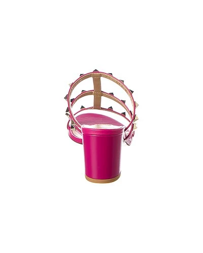 - Rockstud Caged 60 Leather Sandal in pink leather with platinum-finish rockstuds
