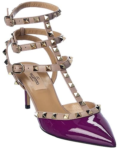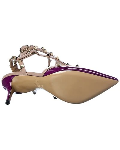 - Rockstud Caged 65 Patent Ankle Strap Pump in purple patent leather and powder leather with platinum-finish rockstuds