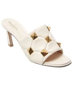 - Roman Stud 65 Leather Sandal in light ivory quilted leather with gold-tone pyramid studs