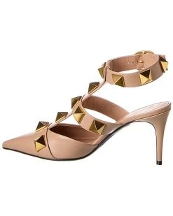 - Roman Stud Leather Bootie in white leather and gold-tone hardware with Roman studs