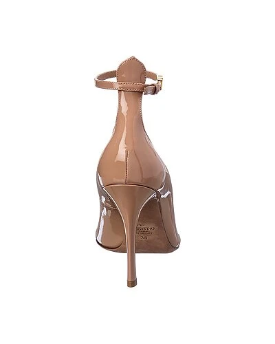 - VLogo 100 Patent Pump in pink patent leather and gold-tone hardware with VLogo buckle and pointy-toe