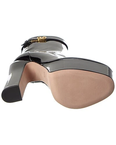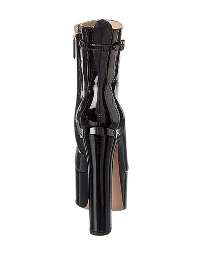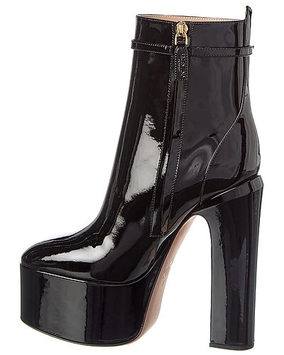 - VLogo 155 Patent Platform Bootie in black patent leather and gold-tone hardware with strap with VLogo accent