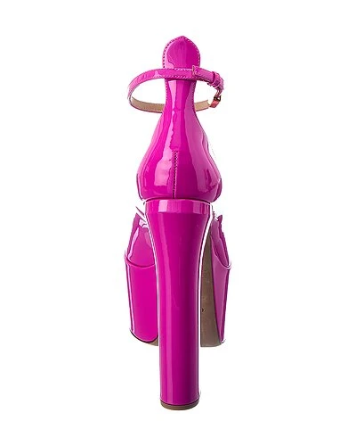- VLogo Tan-Go 135 Patent Platform Pump in pink patent leather and gold-tone hardware with VLogo accent and pointy-toe
