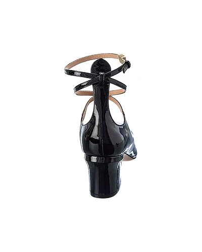 - VLogo Tan-Go 60 Patent Pump in black patent leather and gold-tone hardware with wrap-around ankle strap with VLogo accent