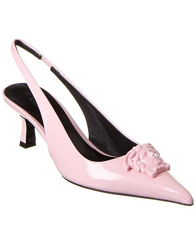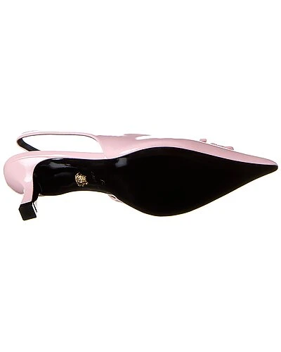 - La Medusa Patent Slingback Pump in light pink patent leather with medusa emblem