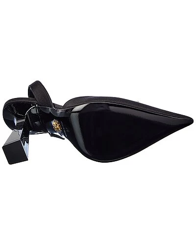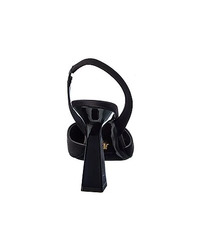 - La Medusa Satin Slingback Pump in black satin with crystal-embellished Medusa head logo accent