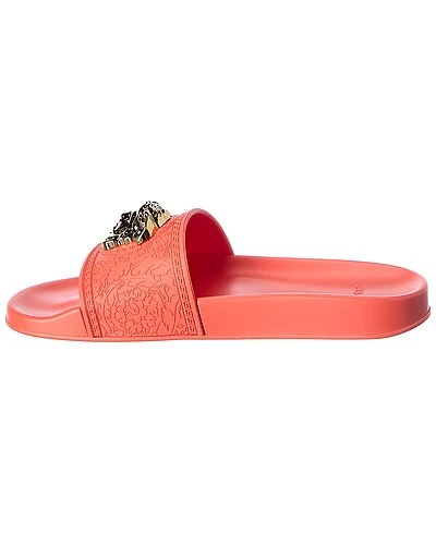 - Palazzo Rubber Pool Slide in coral rubber and gold-tone hardware with Medusa head logo accent
